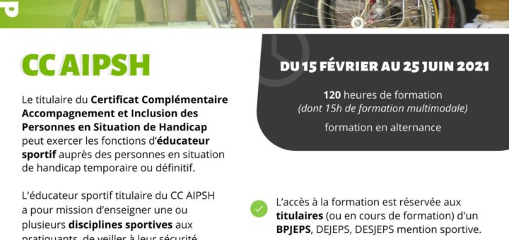 Les Dahus Darbent, sont ravis de vous annoncer l’ouverture du CC AIPSH (Certificat Complémentaire Accompagnement et Inclusion des Personnes en Situation de Handicap) en partenariat avec Haut-Jura Sport Formation. Cette...