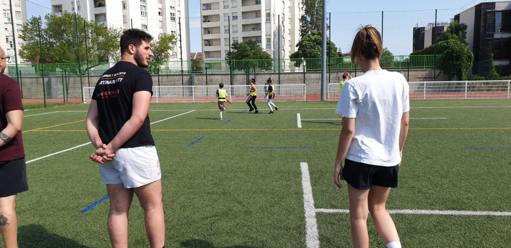 Hier à eu lieu au stade Boiron Granger de Villeurbanne (69) de 8h00 à 13h00, une deuxième initiation/découverte au rugby à XIII pour les BP JEPS Activité physique pour Tous et les BP JEPS Sports collectifs de notre partenaire Innova formation (organisme de formation aux métiers du sport).