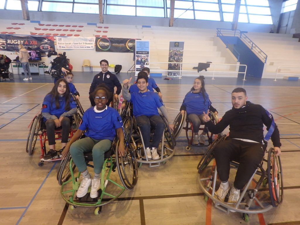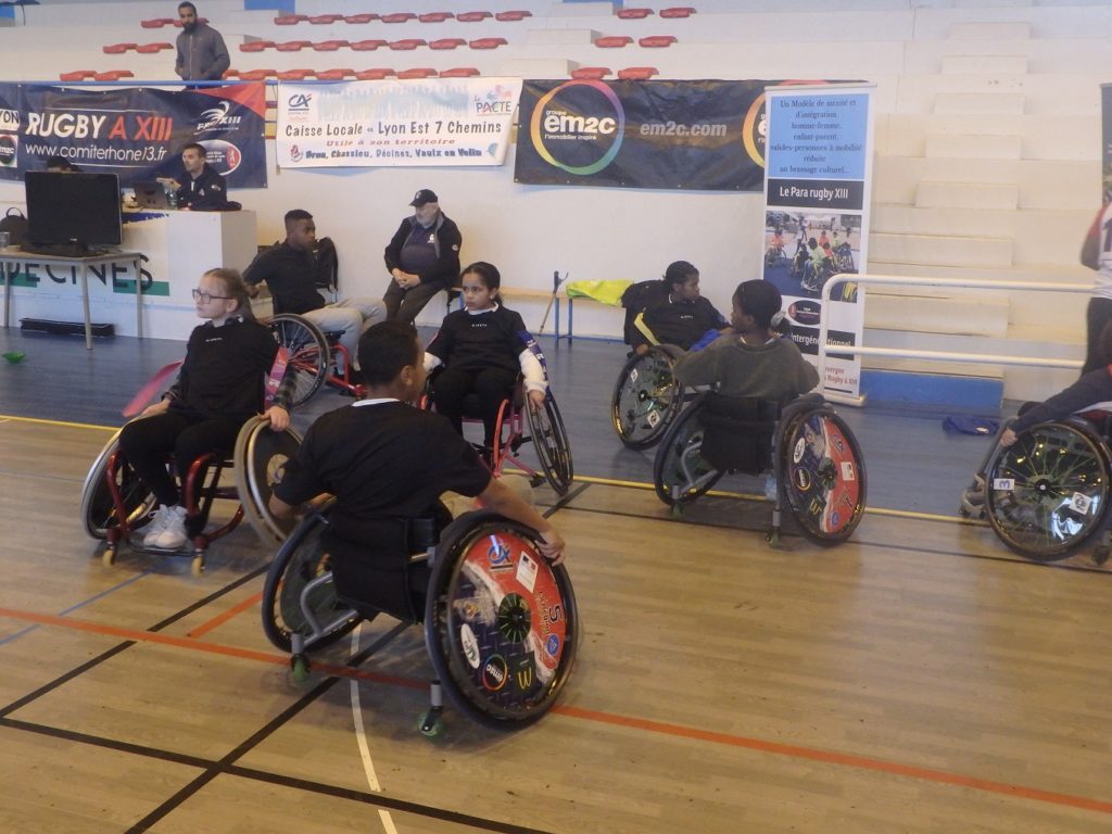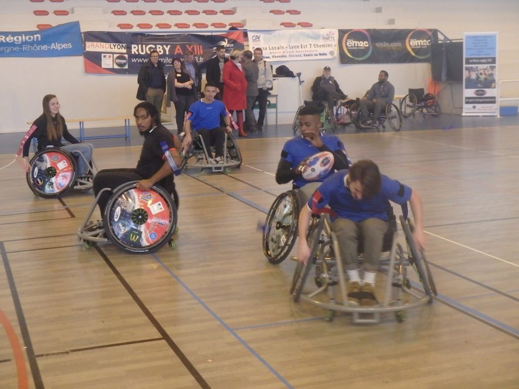 Mercredi 26 février avait lieu la troisième journée du programme de sensibilisation au Handicap des jeunes à travers Rencontres XIII Handi dont on fêtait la 6eme édition avec la participation des jeunes des centres sociaux Dolto et Berthaudiere de Décines, Peyri de Vaulx en Velin, Ferrandiere, Charpennes Tonkin et Cyprian -les Brosses de Villeurbanne et les animateurs du Comité du Rhône, et des clubs de DRL et LVR.