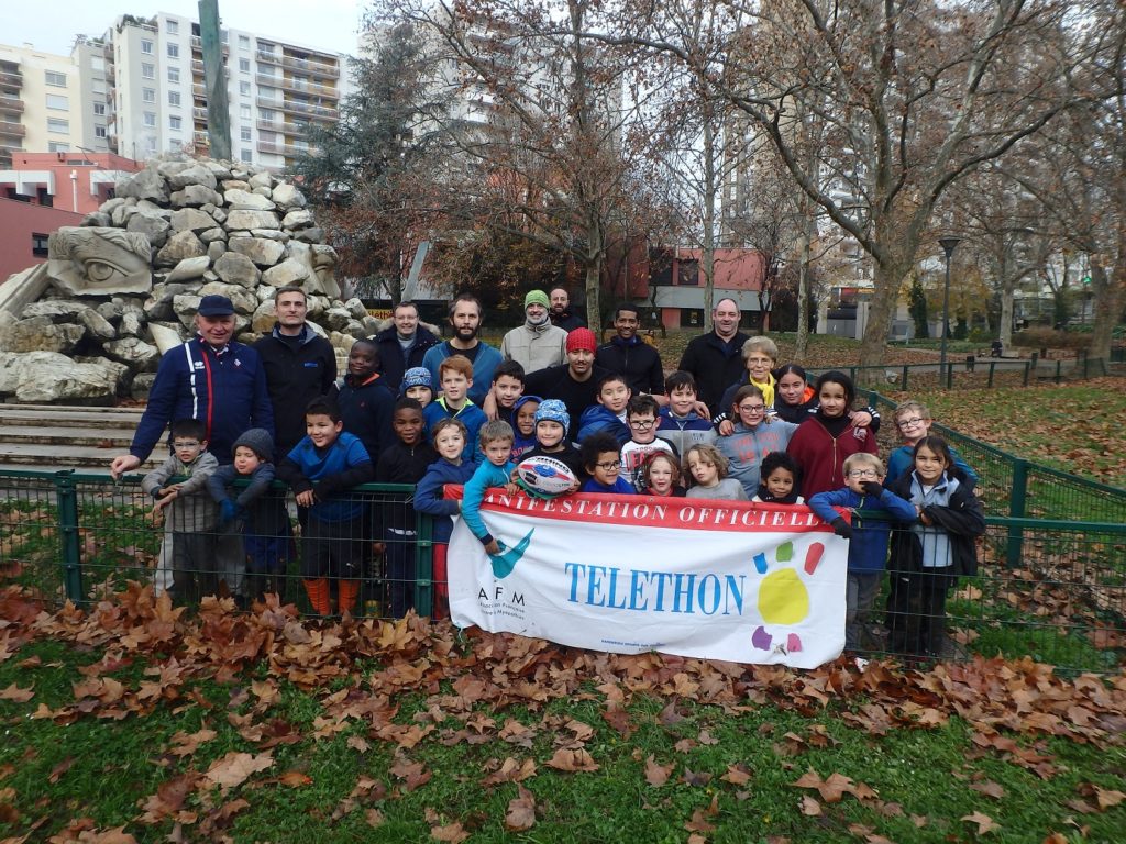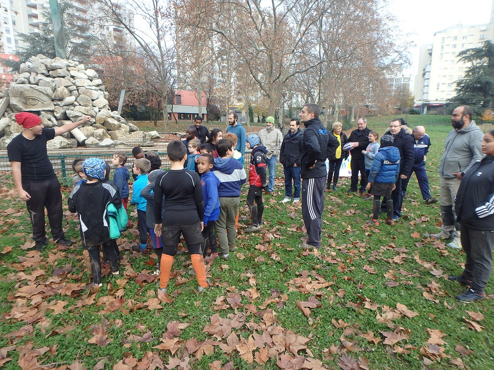 Il y avait même un rayon de soleil dans le cœur de tous ces petits rugbymen en herbe. Une photo souvenir avec Jeanine Cluzeau la responsable du comité d’animation du quartier charpennes Tonkin de Villeurbanne a immortalisé ce moment de solidarité.Bravo à tous.