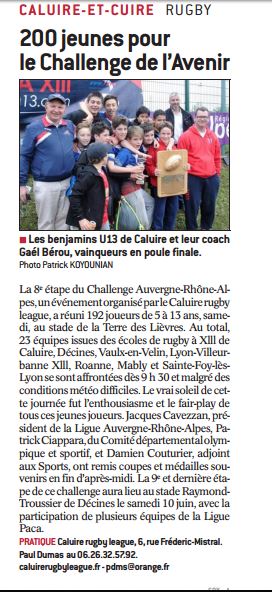 Au total 23 équipes en provenance des écoles de Rugby à XIII des clubs de Caluire-Décines-Vaulx en Velin-LVR XIII-Roanne-Mably et Sainte Foy Les Lyon .