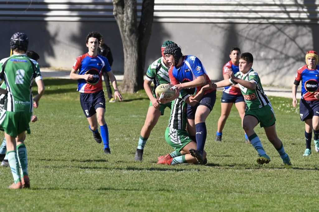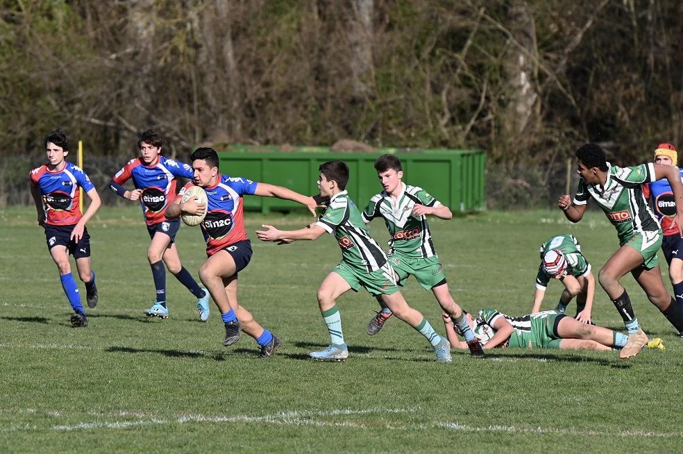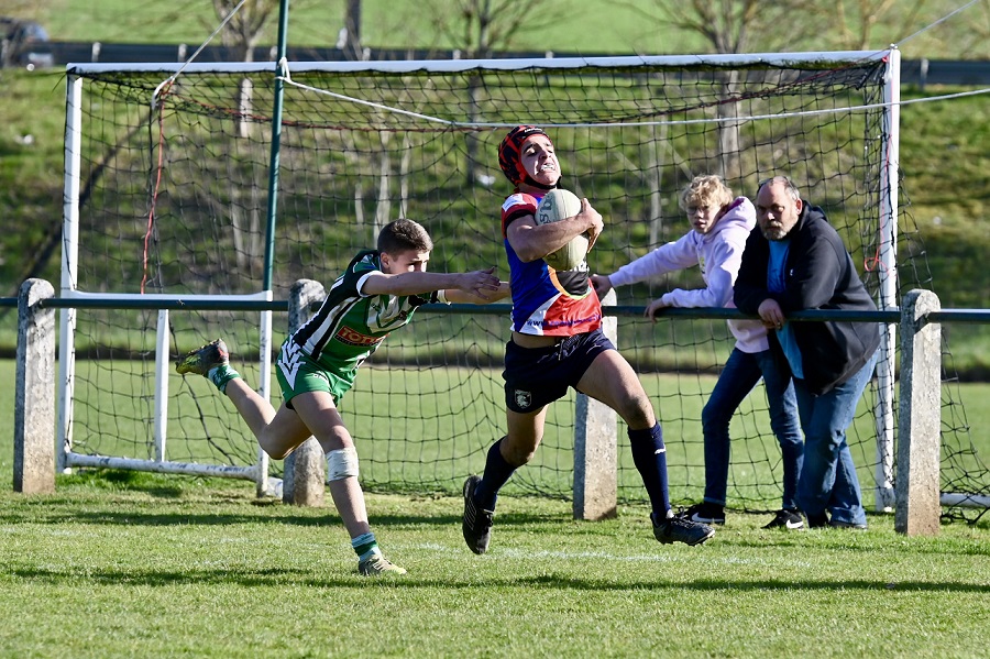 Les locaux jettent toutes leurs forces dans la bataille, mais des fautes de main font avorter de beaux mouvements..et c’est au contraire Tom Peronin qui récupère un bon ballon et file à l’essai. Camille Audap transforme. Sur la remise en jeu, les locaux reviennent à la charge et marque un essai transformé. Il reste cinq minutes à jouer, le score à l’avantage des gônes et sur un tenu rapidement joué Salah s’enfonce dans la défense et marque un essai transformé par Tom.