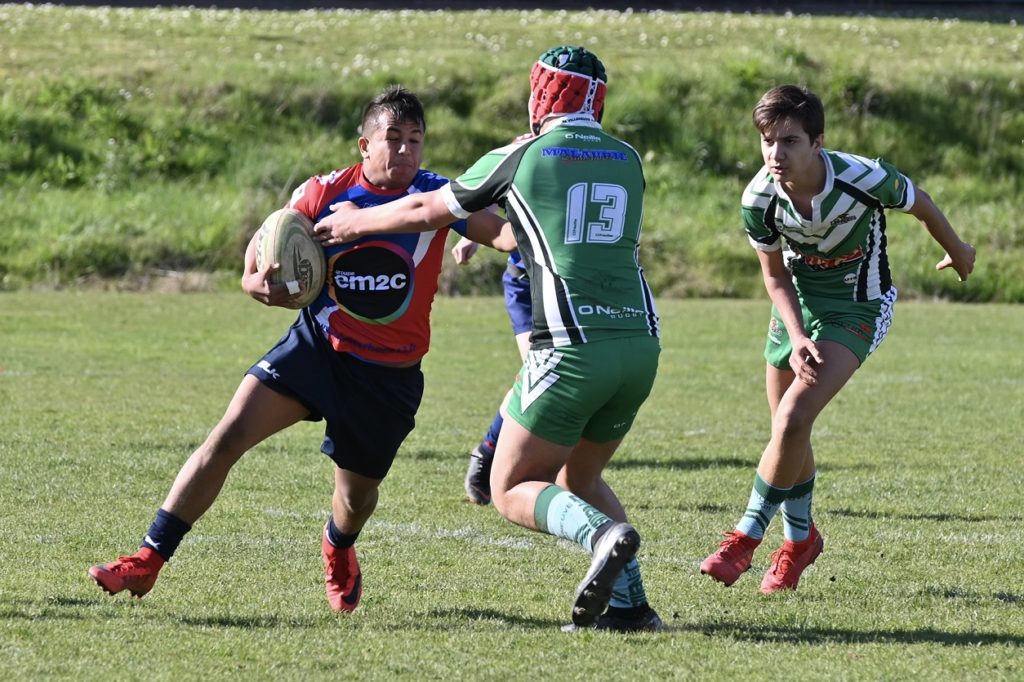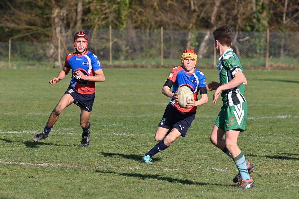 Trois minutes plus tard, sur une charge de Rayan, Wassim au relais file à l’essai et Tom transforme. 12 à 0 à la dixième minute. Le réveil des locaux se produit et à deux reprises,ils se montrent dangereux. Sur la contre(attaque Rayan Bonte feinte la passe et franchit la ligne d’avantage pour un essai transformé du bord de la touche par Tom Peronin.