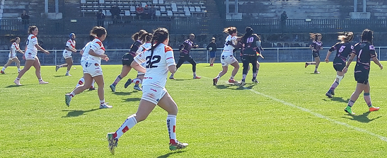 A la reprise les joueuses de l’entraîneur Adrien Michoux refont en partie leur retard en inscrivant deux essais, mais les Parisiennes grâce à la puissance de leur première ligne exploitent de belles charges pour trois nouveaux essais en débordement. Dans le dernier quart temps, les visiteuses accélèrent le rythme et vont en dame à cinq reprises contre trois aux joueuses du Haut Bugey. La victoire 17 à 10 essais ou 68 points à 40 permet ainsi aux Parisiennes de remporter un beau succès et une qualification pour le France.