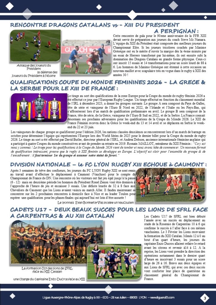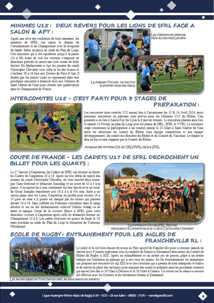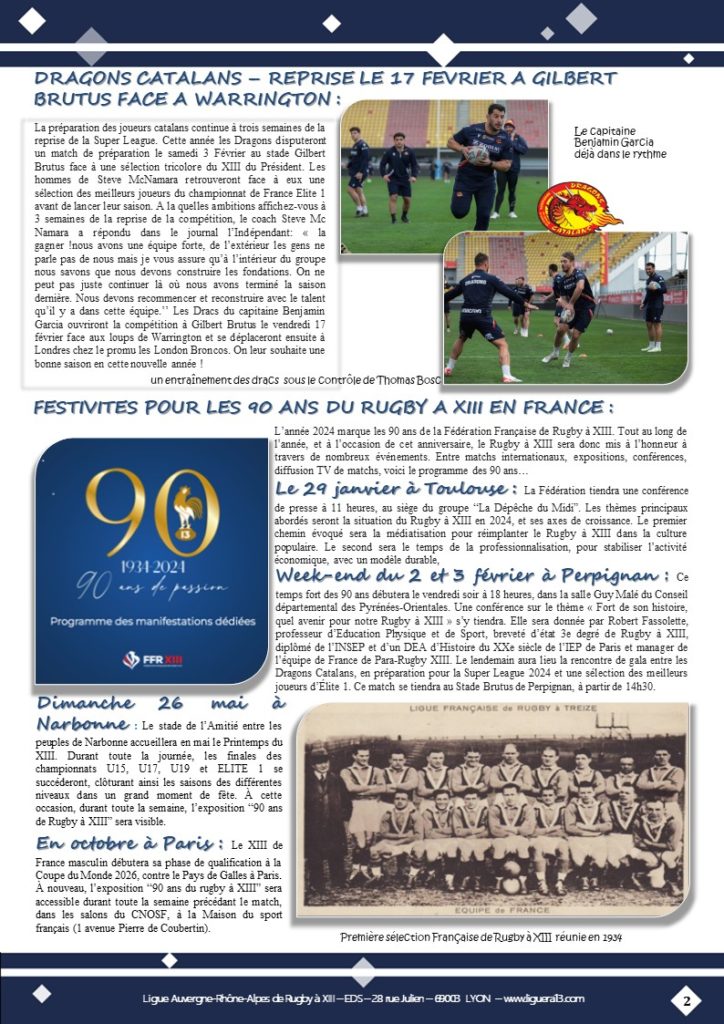 XIII INFO n°128 Janvier 2024 ͼͽ par liguearaxiii · 5 février 2024 90 ans de passion. Toutes les news de ce début d’année à consulter ci-dessous. AP Partager